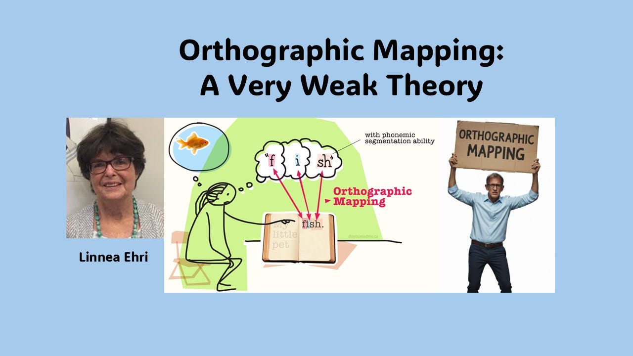 Theories are used to explain a set of facts and understand phenomena. Theories are based on a set of research-based data. As such, they are neither right nor wrong; rather, they are robust or weak. The question is: Is Ehri’s theory of orthographic mapping robust or weak? Since it seems to conflict with much of the research in cognitive psychology related to memory, and the deductions made are based on rather “creative” interpretations of research, one must conclude that it is a weak theory. It’s also a silly theory.